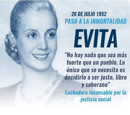 “(…) Yo no quise ni quiero nada para mi. Mi gloria es y será siempre el escudo de Perón y la bandera de mi pueblo, y aunque deje en el camino jirones de mi vida, yo sé que ustedes recogerán mi nombre y lo llevarán como bandera a la victoria”.