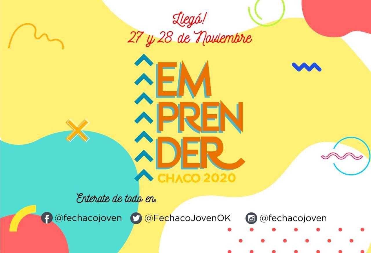 El Emprender Chaco 2020 y el concurso que otorgará el Premio al Joven Empresario del Año, organizado por la rama juvenil de la Federación Económica del Chaco (FECHACO Joven), se desarrollará este viernes y sábado, a partir de las 17.30, bajo modalidad virtual.