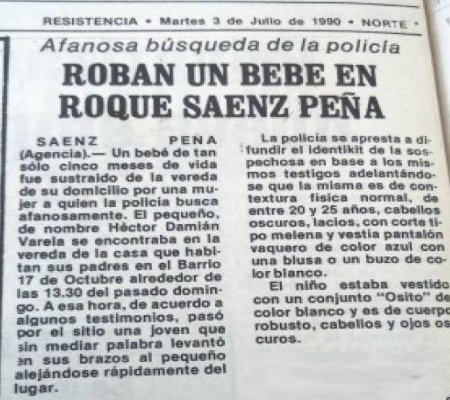 Nota de Norte de Junio de 1990 dando cuenta de la desaparicion del bebe
