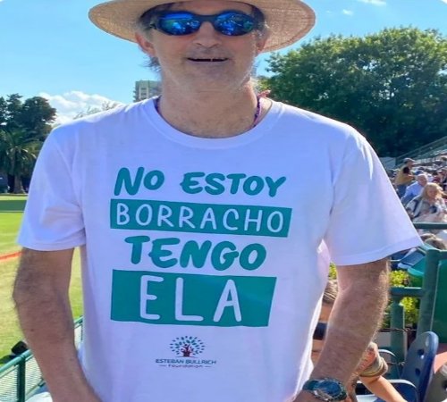En esa imagen se puede apreciar que también llevaba puesta una remera que tenía grabado el texto “No estoy borracho, tengo ELA” y el logo de su fundación, la cual presentó a mediados de noviembre último y, entre otros objetivos, busca financiar investigaciones e innovación para el tratamiento y la cura de esta patología.