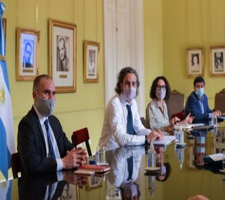 El gabinete económico, encabezado por el jefe de Gabinete de Ministros de la Nación, Santiago Cafiero, se reunió hoy en el salón de los Científicos de la Casa Rosada, para analizar la asistencia y las medidas implementadas a diferentes sectores productivos y monotributistas en el marco de la pandemia del Covid.En la reunión se repasaron los principales indicadores económicos y sociales. Aprovechando la presencia de la titular de la ANSES, del Ministro de Desarrollo Social y del titular del INDEC, se analizaron las principales políticas de inversión social (AUH, AUE, Progresar, ayuda alimentaria, Potenciar Trabajo) y se evaluó el impacto del refuerzo de $15.000 para las y los perceptores de AUH, AUE y monotributistas A y B, en el marco de las nuevas medidas sanitarias establecidas en el AMBA.