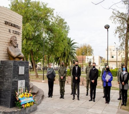 Al cumplirse 200 años del bicentenario del paso a la inmortalidad del General Martín Miguel de Güemes, el intendente Bruno Cipolini encabezó el acto frente al busto del héroe militar y popular en plaza San Martín. Participaron también funcionarios del Ejecutivo Municipal, Concejales y autoridades de las Fuerzas de Seguridad Pública. Además, se contó con la presencia especial de la profesora María Cristina “Macacha” Fernández, especialista en la historia del reconocido héroe nacional.En el marco de las restricciones vigentes por la pandemia, el acto se llevó a cabo con un reducido grupo de concurrentes y bajo cumplimiento de protocolo sanitario. Estuvieron presentes el Comandante Mayor Guillermo Oscar Danielli, jefe del Comando Región VIII de Gendarmería Nacional; Comandante Mayor Fabián Manuel Salas, Segundo Jefe del Comando de Región VIII de Gendarmería Nacional, Comandante Mayor Jorge Elías Mariani, Jefe del Departamento de Operaciones del Comando Región VIII de Gendarmería Nacional; el presidente del Concejo Deliberante Municipal Pedro Egea; los concejales Nora Gauna y Carlos Pereira; la Bandera de Ceremonia portada por profesores de la Escuela de Música, Danza y Teatro Emilio Fabre y funcionarios del Ejecutivo.