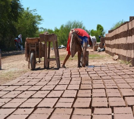 La fabricación en el interior de la provincia se convirtió durante la pandemia en una salida laboral para centenares de familias. La informalidad rige el empleo.Las manos embarradas, el sol pegando con toda su fuerza sobre las cabezas y espaldas que se inclinan para amasar, cortar, dejar secar y cocinar. Es el trabajo de los ladrilleros. Los hacedores de una materia prima que es esencial para la industria de la construcción, una noble pero menospreciada labor.