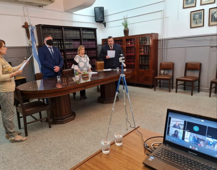 La Ceremonia fue llevada a cabo desde el Salón de Acuerdos de la Cámara Federal de Apelaciones de Resistencia, encabezada por la Presidenta del Tribunal, doctora María Delfina Denogens junto con el Vocal subrogante, doctor Enrique Jorge Bosch, y de manera virtual, la Vicepresidenta, doctora Rocío Alcalá.