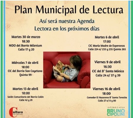 En dependencias del Nido del Milenium, hoy  martes a las 18:30 la Secretaría de Cultura y Educación Ciudadana pondrá en marcha el Plan de Lectura.