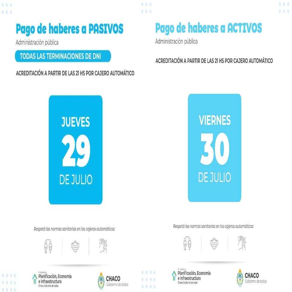 A pocos días del anuncio de acuerdo paritario entre las entidades gremiales y el Gobierno Provincial, el subsecretario de Política Económica Sebastián Martínez confirmó que desde el jueves 29 se comenzará con el pago de haberes correspondientes al mes de julio. “El día 29 vamos a estar pagando al sector pasivo, jubilados y pensionados, y el día 30 al sector de trabajadores públicos”, precisó el funcionario en comunicación con La Radio, donde además remarcó que se ejecutará la acreditación para “todos los números” de DNI en los días estipulados.