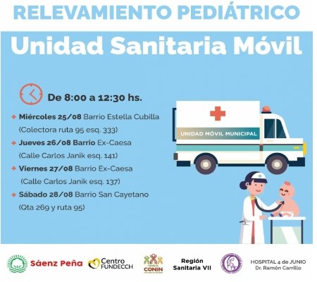 Los operativos comenzarán el día miércoles 25 y se extenderán hasta el día sábado 28 de agosto, en distintos puntos de la ciudad y realizarán relevamiento pediátrico nutricional, atención obstétrica y vacunación conforme al calendario nacional.
