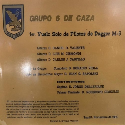 El teniente Carlos Julio Castillo, de 25 años, no tenía permiso para volar Dagger en 1982. A raíz de los primeros derribos del mes de mayo durante el conflicto, y de su motivación para volar en combate, lo consiguió finalmente el día 19 de mayo de 1982. “Particularmente no estaba habilitado para el combate pero insistí y logré hace cinco días que me habilitaran”, cuenta en la carta a su familia.