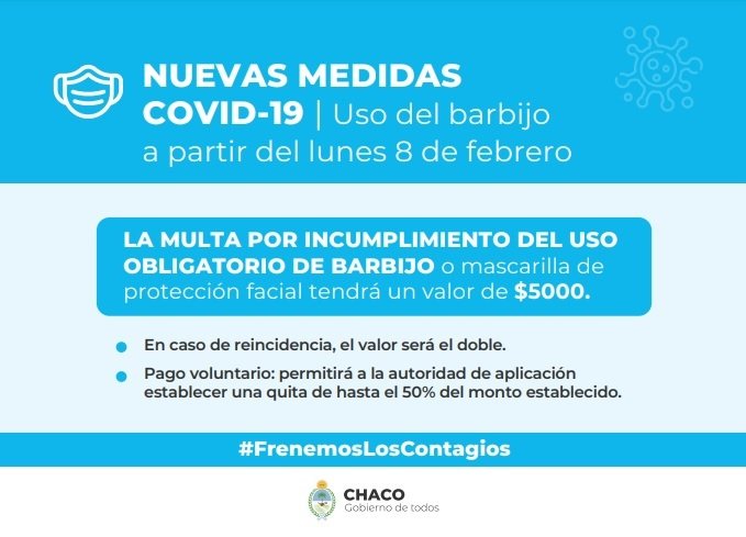 El gobernador Jorge Capitanich firmó en la noche de este jueves 4 de febrero, el decreto N° 223/21 que determina que quienes no utilicen tapabocas o barbijo al circular por la vía pública podrán ser multados.