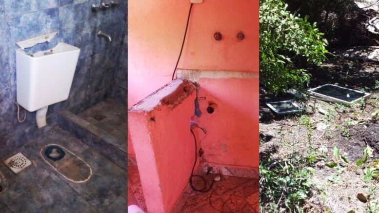 Aparentemente el hecho se produjo en la madrugada del lunes y un primer sondeo permitió determinar la faltante del tanque de agua, juego de sanitarios, mesada de cocina con griferías y demás accesorios. Además habían logrado desmontar los ventanales internos de vidrio, que fueron dejados en el terreno baldío lindante, lleno de árboles y malezas.
