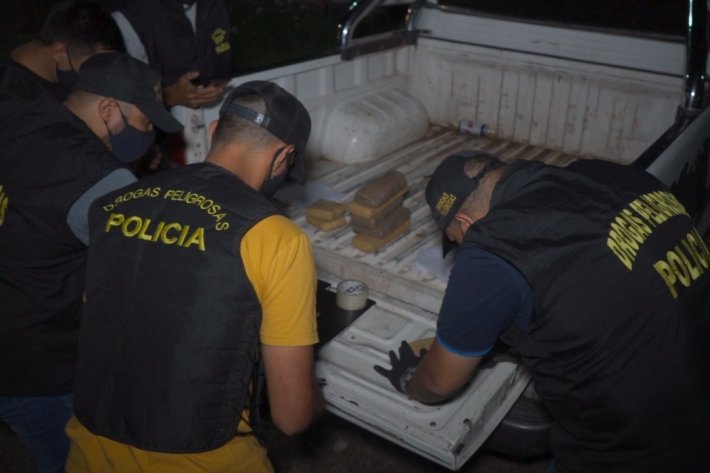 Los policías se desplegaron por diferentes puntos y finalmente en la ruta 11, frente a un comercio mayorista, observaron una camioneta estacionada. Hasta el rodado se acercaron cuatro personas que arribaron en dos motocicletas que provenían del barrio Ángel de la Guarda, uno de ellos llevaba una caja de cartón.