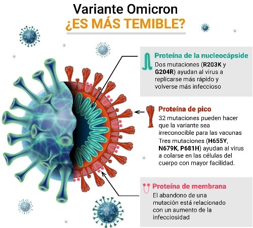 Robert Garry es virólogo de la Universidad de Tulane, y realizó una comparación directa de las mutaciones observadas en Delta y Ómicron: “Definitivamente hay puntos calientes donde a este virus le gusta mutar ahora”. Pero el hecho de que haya muchas mutaciones no significa necesariamente que se vayan a sumar a un virus más dañino. Todavía no sabemos qué van a hacer todos esos cambios en conjunto para las cosas que importan a este virus. Hasta ahora no se ven muchas mutaciones importantes que puedan hacer que la versión Ómicron sea más contagiosa que Delta.