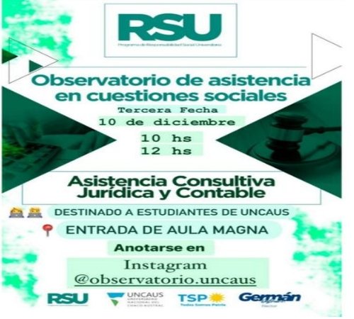 Para aquellos egresados de la Universidad Nacional del Chaco Austral que quieran forma parte deben inscribirse en obsevatorioestudiantil@uncaus.edu.ar, o en el Aula 1, piso 1, edificio tecnológico, celular 36244411619.