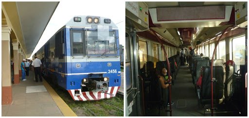 En esos lugares de ascenso y descenso de pasajeros, quedó un desnivel muy pronunciado del terraplén de piedras para las vías y para subir al tren los usuarios un poco más “tenían que colgarse con sogas”, algo inaudito- La gente entre ellos se ayudan para poder subir al tren.
